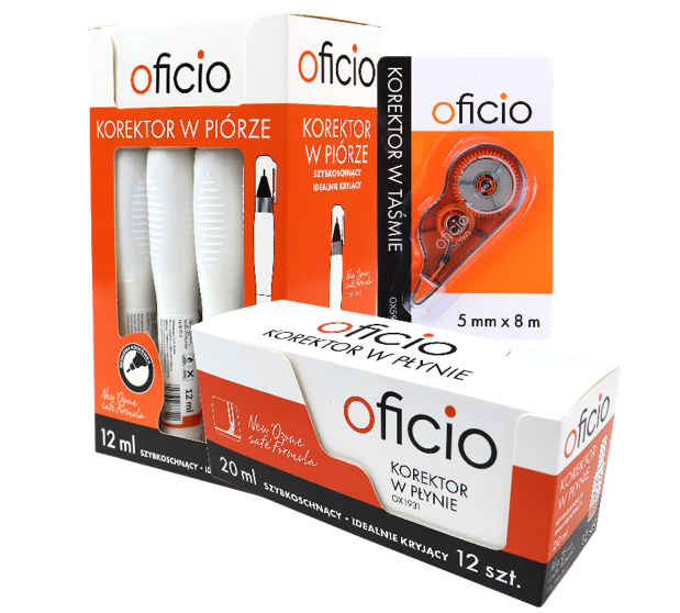 Wprowadzając produkty pod marką Oficio zakładaliśmy, iż Klienci będą mogli nabywać towary dobrej jakości w konkurencyjnych cenach. Produkty Oficio wytwarzane są bowiem przez renomowanych producentów, którzy swoją wieloletnią obecnością na rynku potwierdzają utrzymanie wysokich standardów jakościowych.